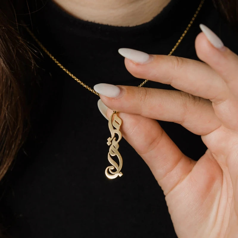 Celebrate faith with elegance through this Quran Design Vertical Necklace, featuring intricate Arabic engraving on a sleek pendant — a meaningful and timeless gift for Muslim women.